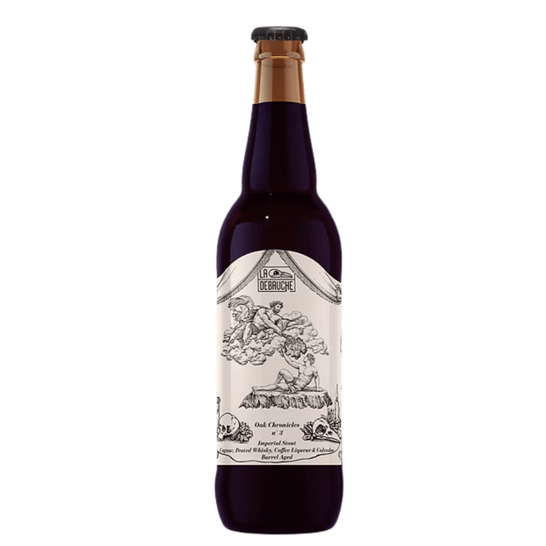 La Débauche Oak Chronicle N°3 is een krachtige en gelaagde Imperial Stout van 12,2%, opgebouwd uit een zorgvuldig samengestelde blend van vatgerijpte stouts. Het bier heeft gerijpt op verschillende vaten, waaronder cognac-, geturfde whisky-, koffielikeur- en calvadosvaten, wat zorgt voor een diep en complex smaakprofiel. De combinatie van hout, spiritinvloeden en geroosterde mout levert een intens en vol karakter op, waarin warmte, diepgang en balans centraal staan.